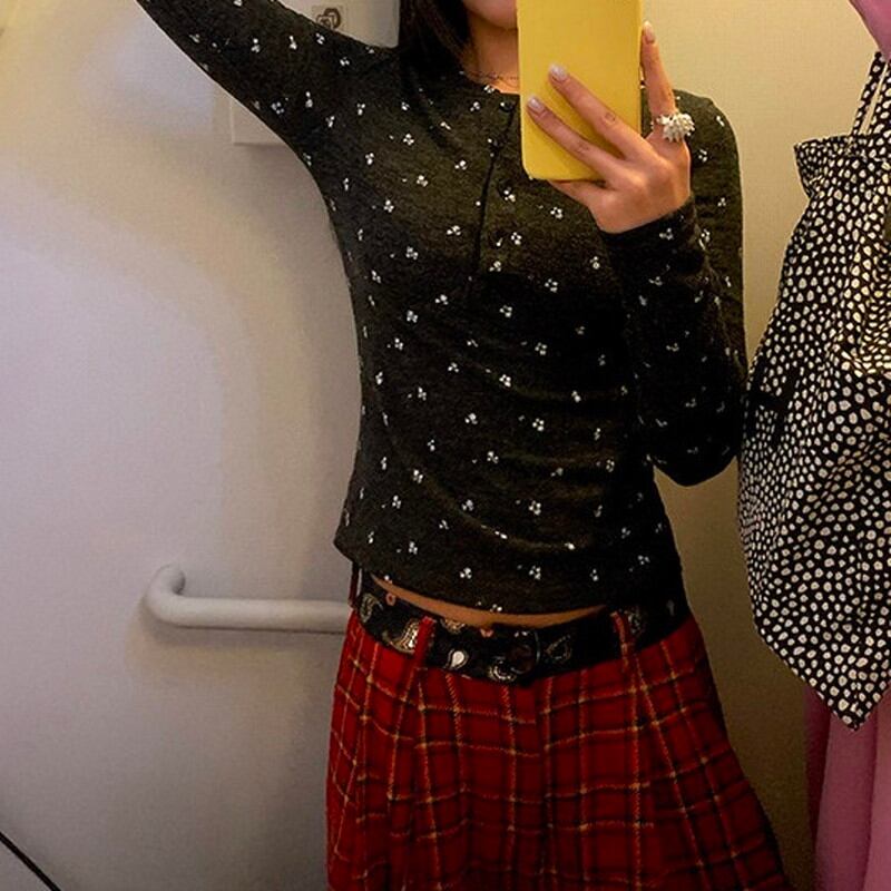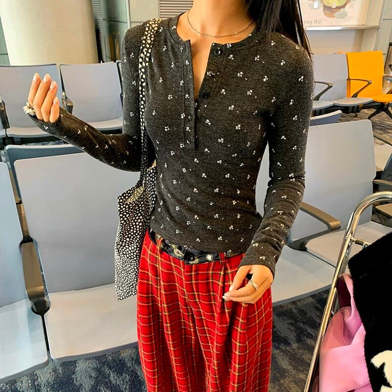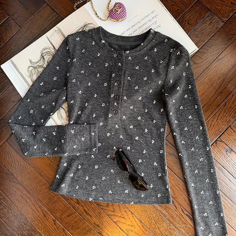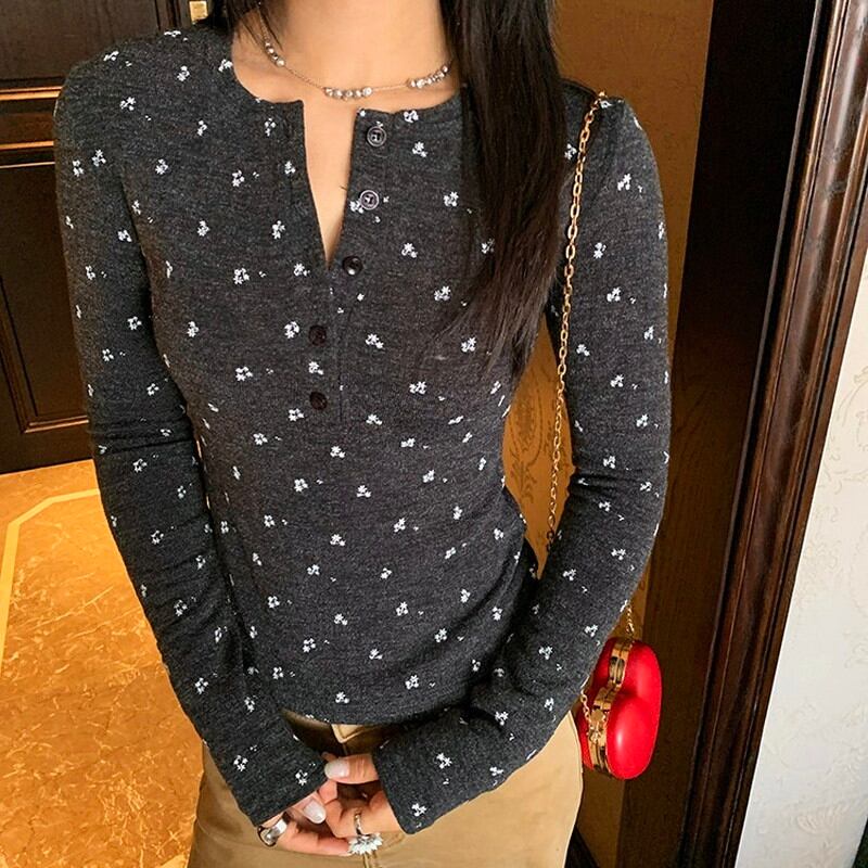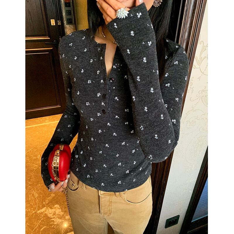 flower print half-button slim cutsew 2litr06235