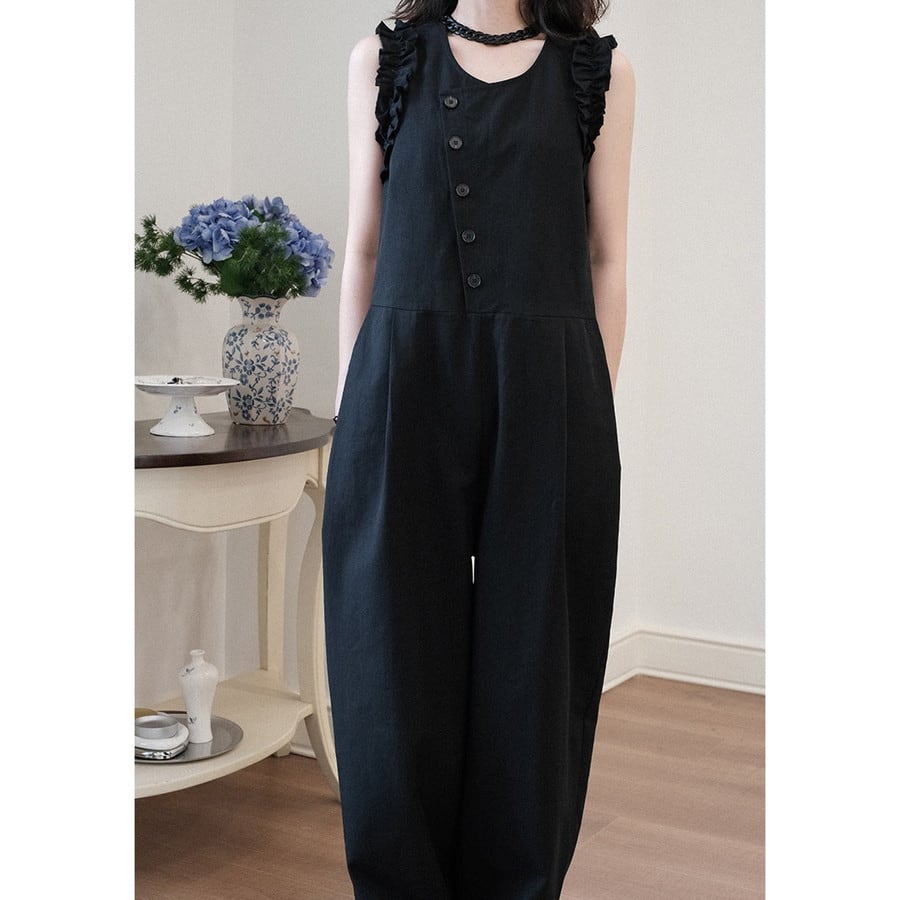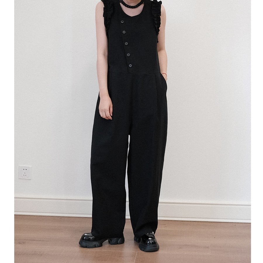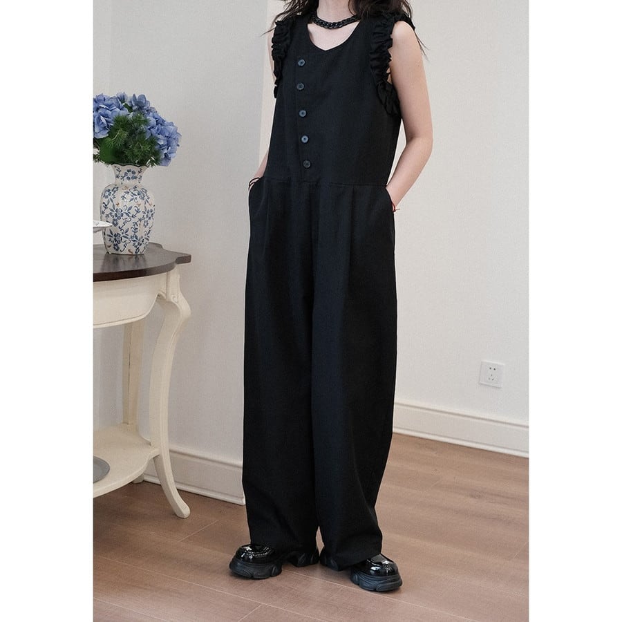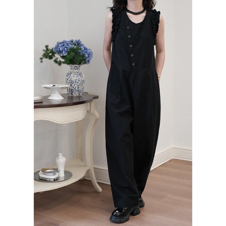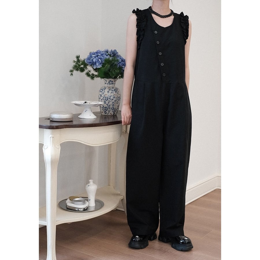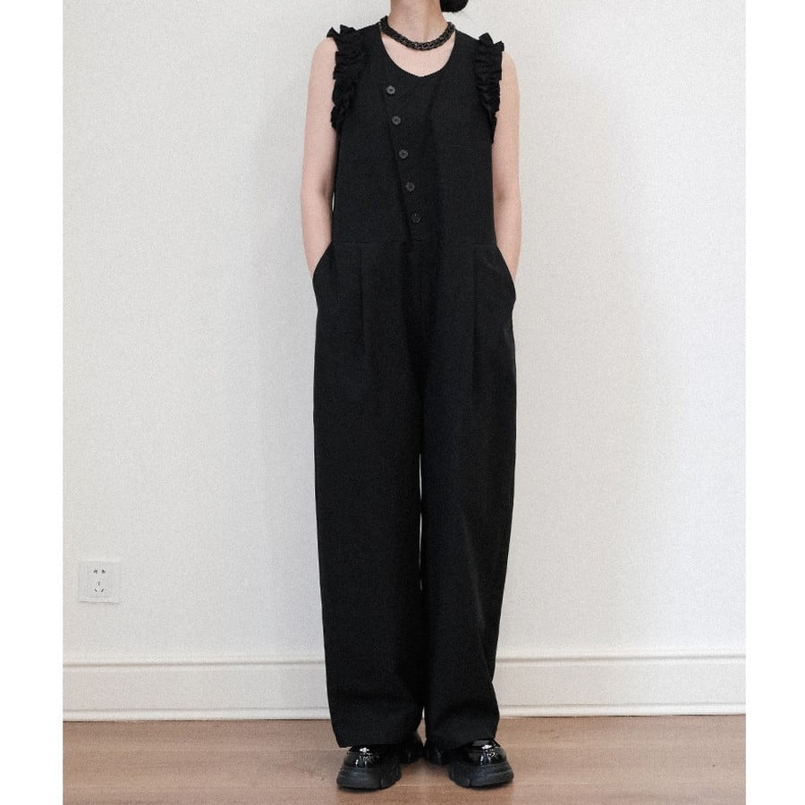 wide-pants frill diagonal-button all-in-one 2litr06288