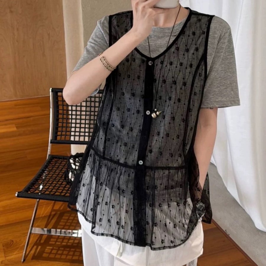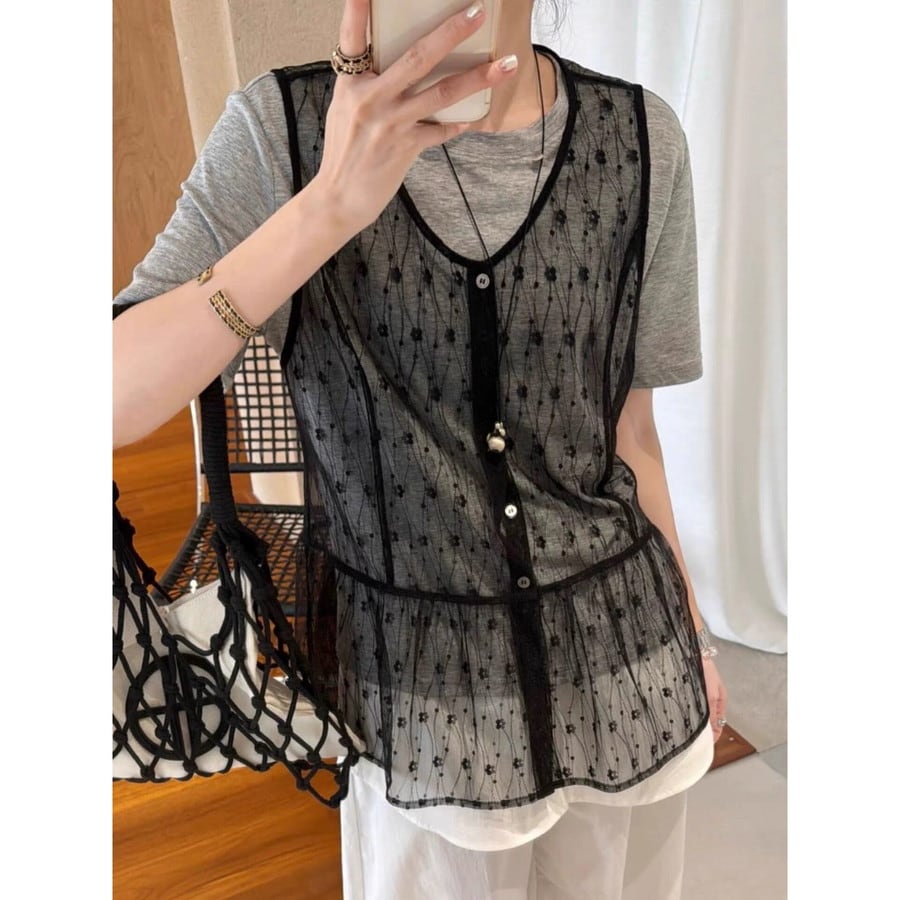 Sier flower u-neck tops 2set 2litr06305