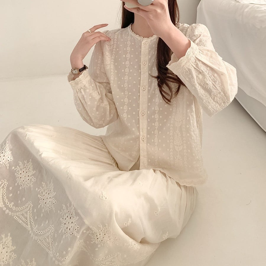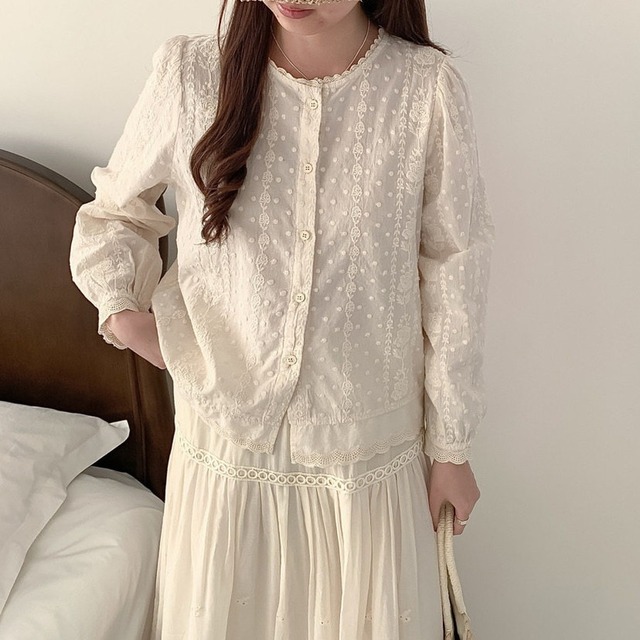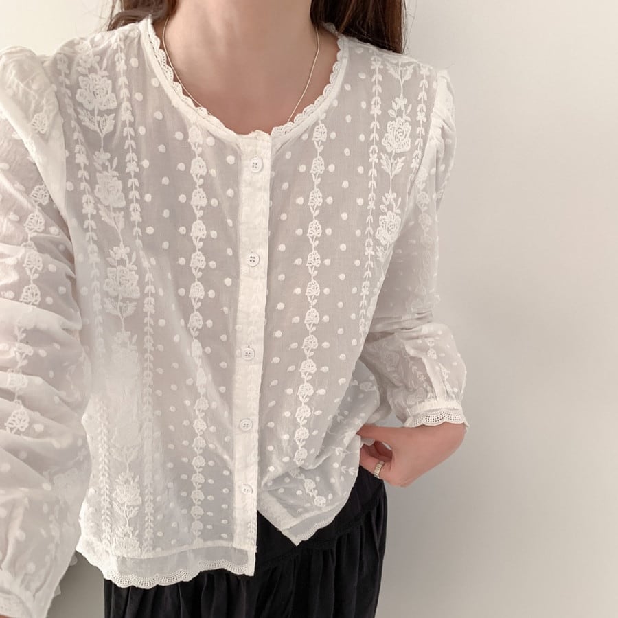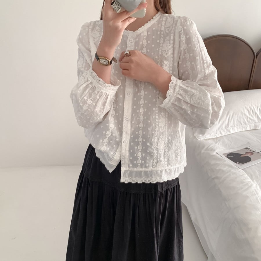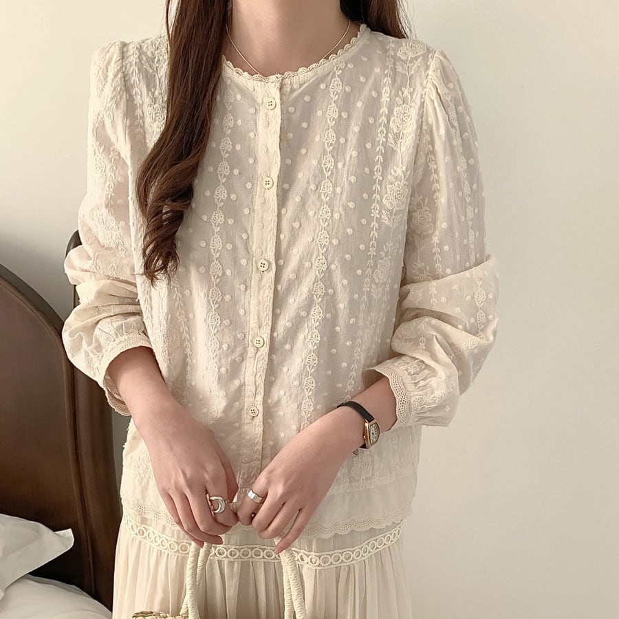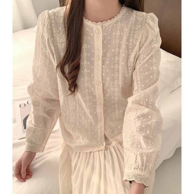 flower stripe lace blouse 2litr06314