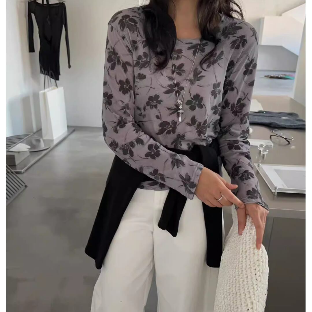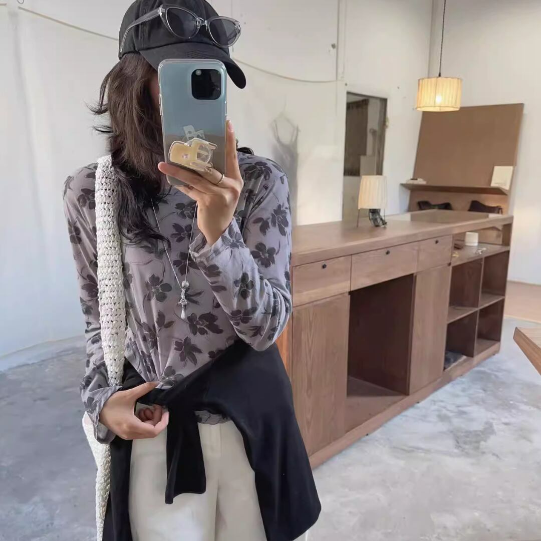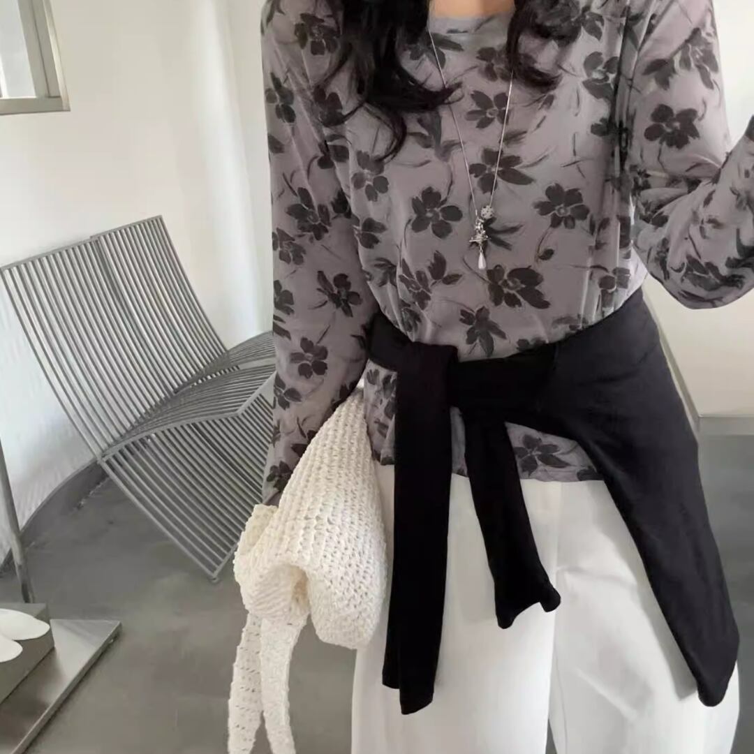 Sheer Floral Long Sleeve Top 2litr06332