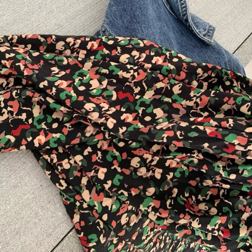さりげなく散りばめたレッドとグリーンの小花柄。