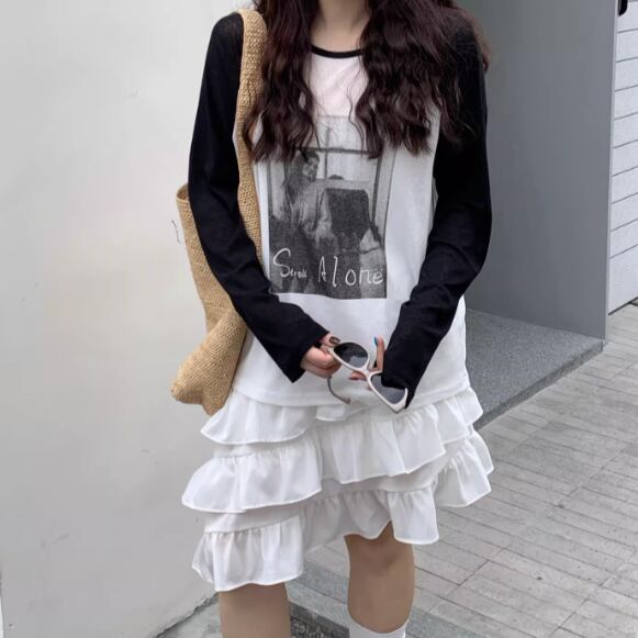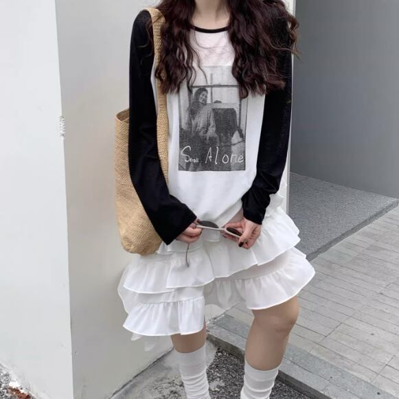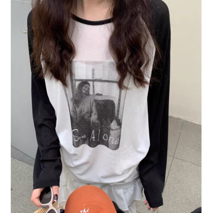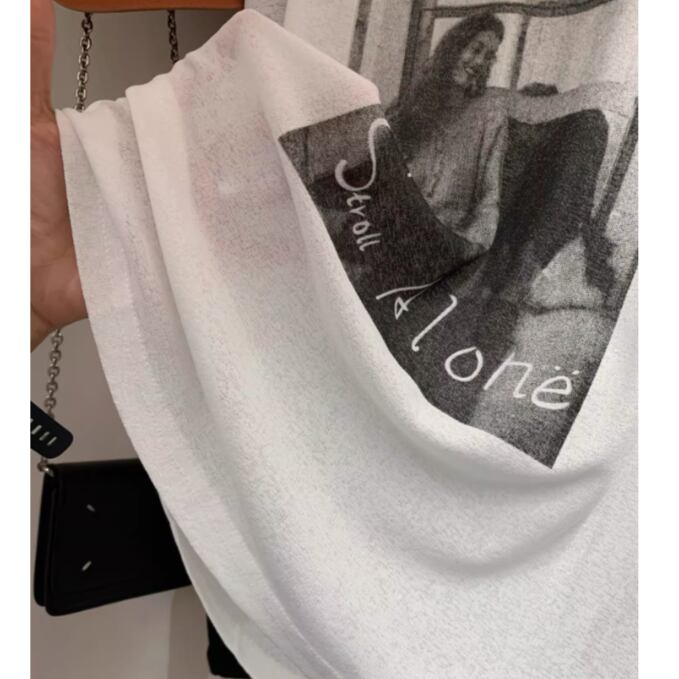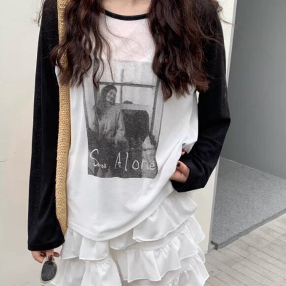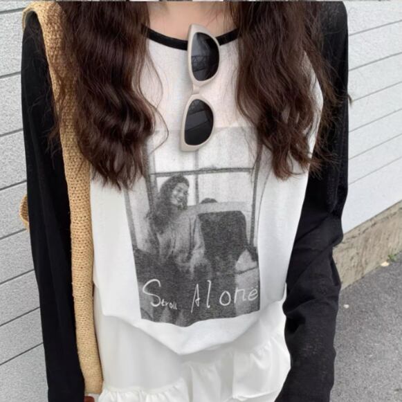 モノトーンのフォトプリントを落とし込んだ一枚。
