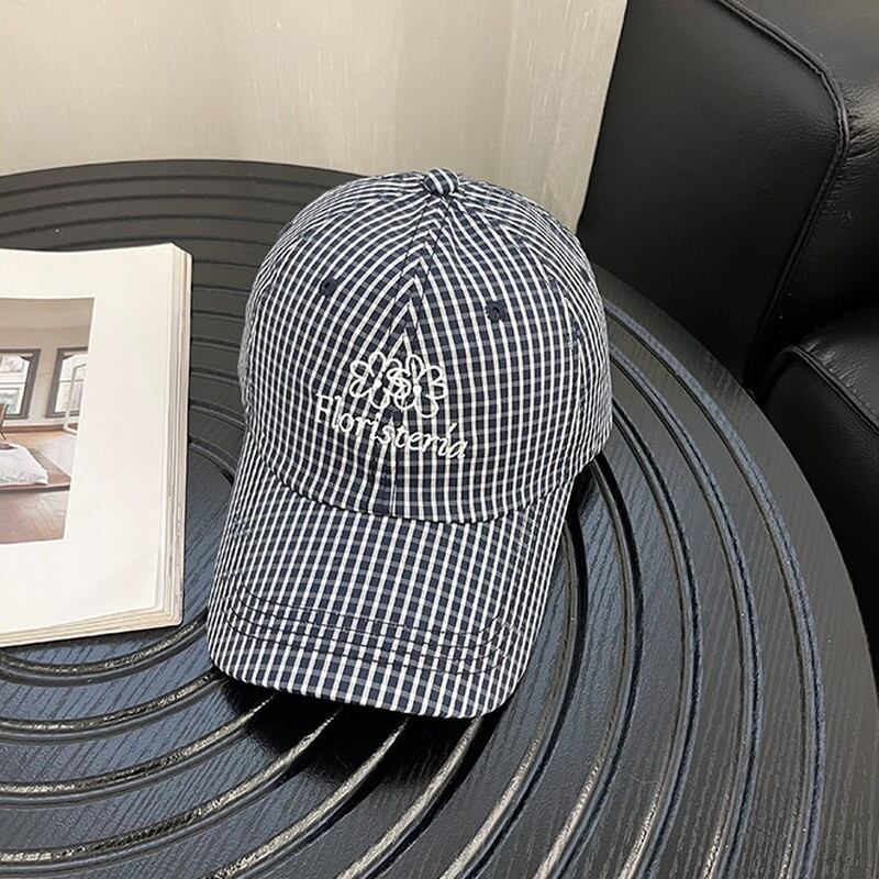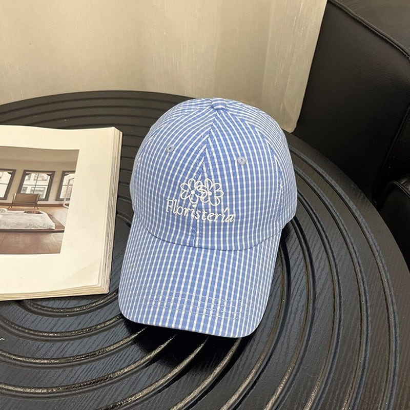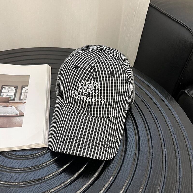 checked flower embroidery retro hat cap 2litr06348