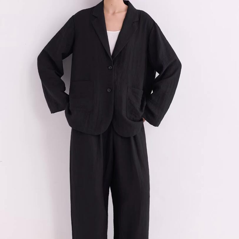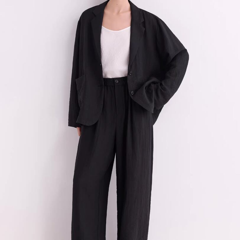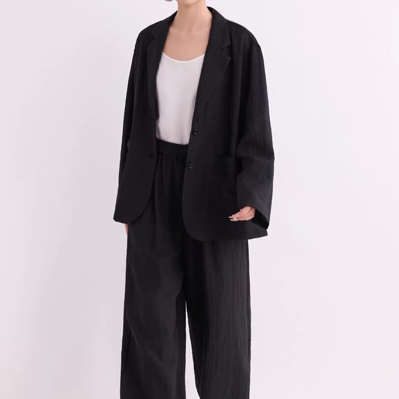 同素材のパンツと合わせれば、