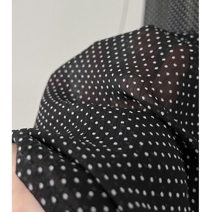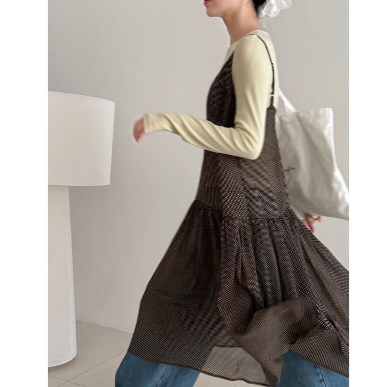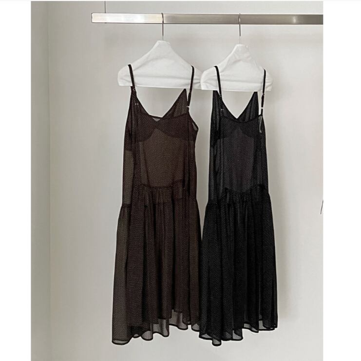 繊細なドット柄と、軽やかに揺れるシアー素材が魅力のキャミワンピース。