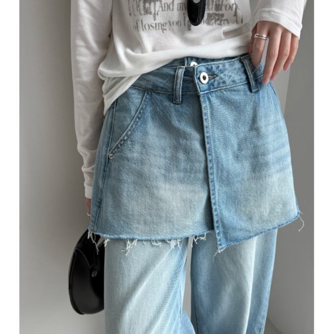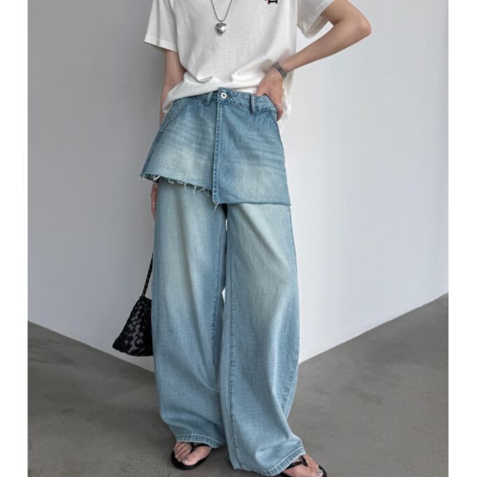 レイヤードデザインデニムワイドパンツ 2litr06428