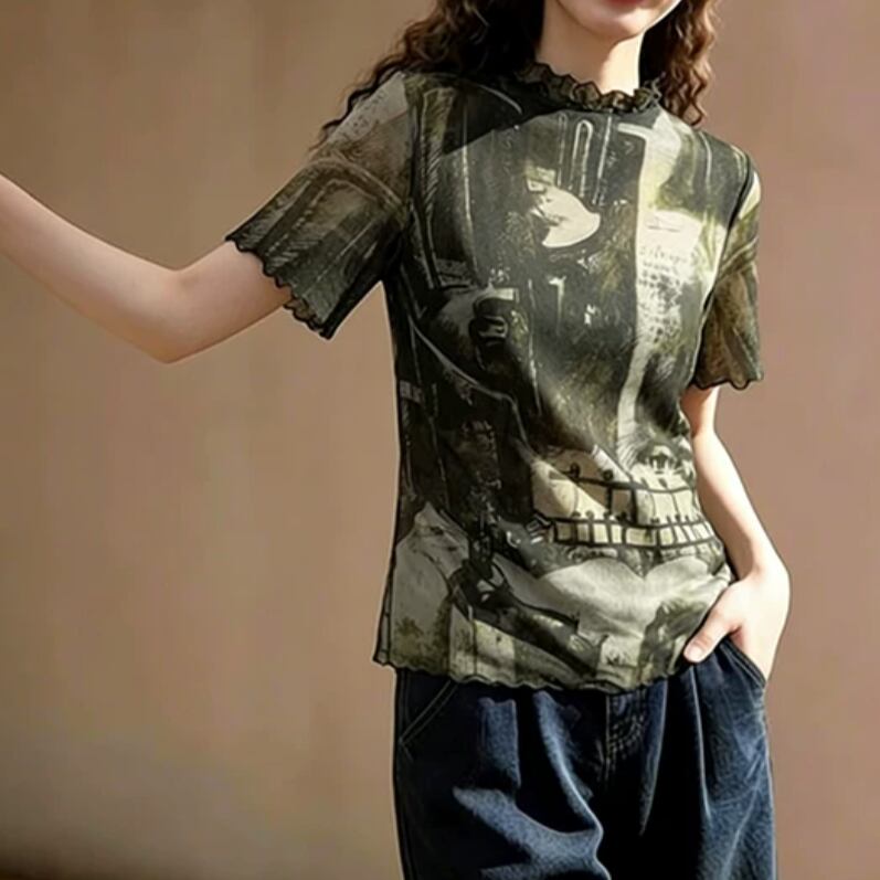 ヴィンテージ感漂うグラフィックトップス。