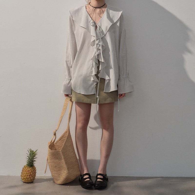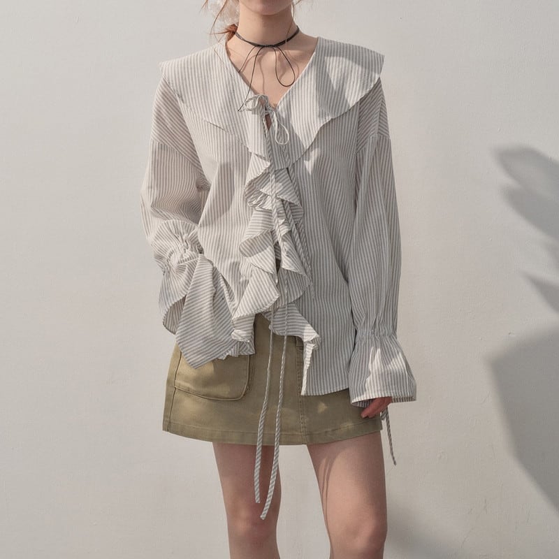 フリルストライプブラウス 2litr06367