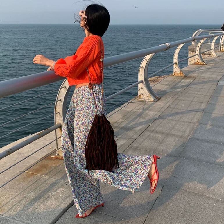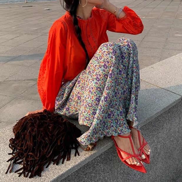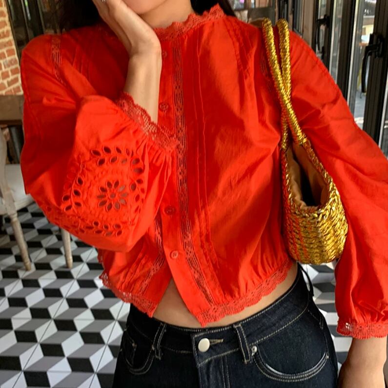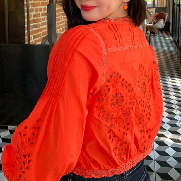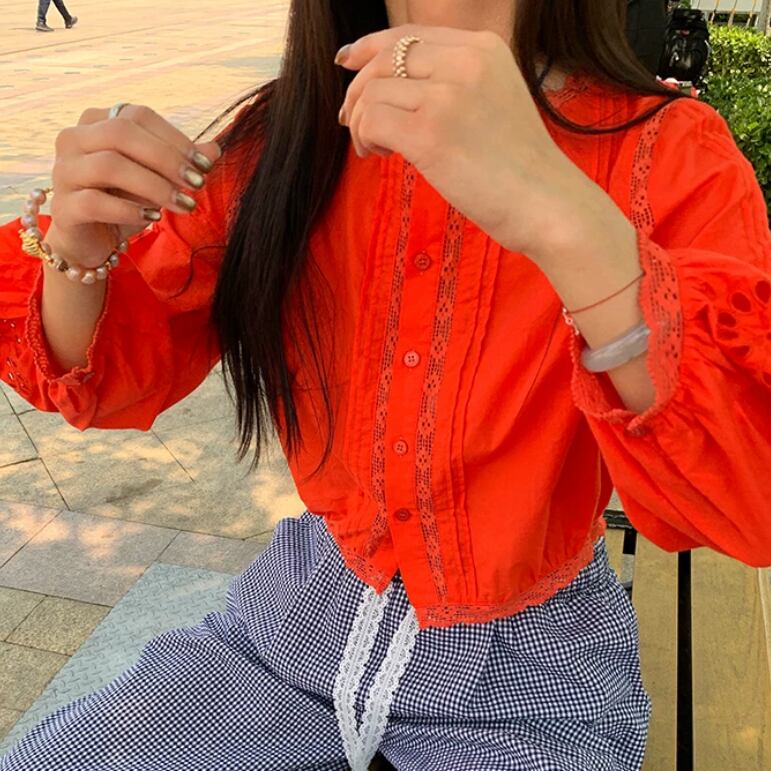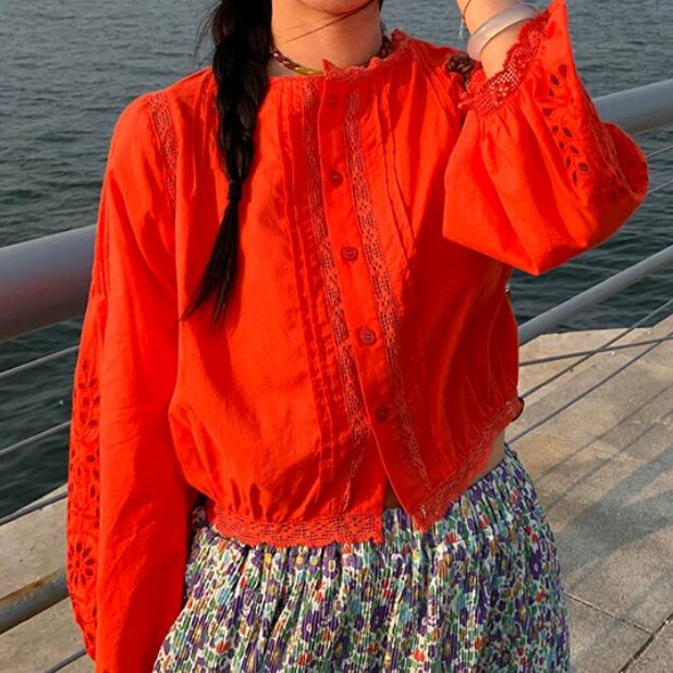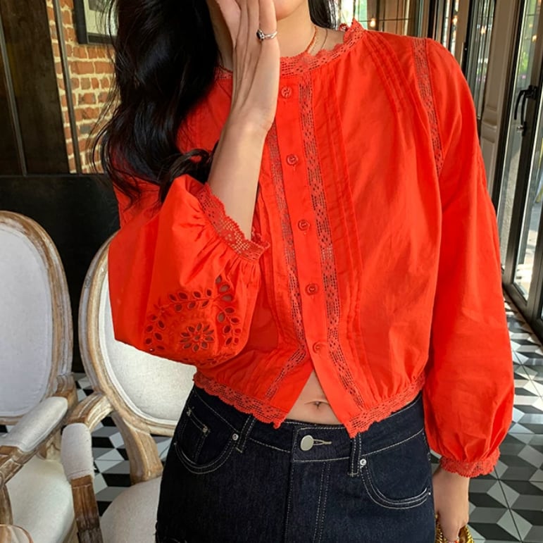 鮮やかなカラーと繊細なレースが魅力の一着。