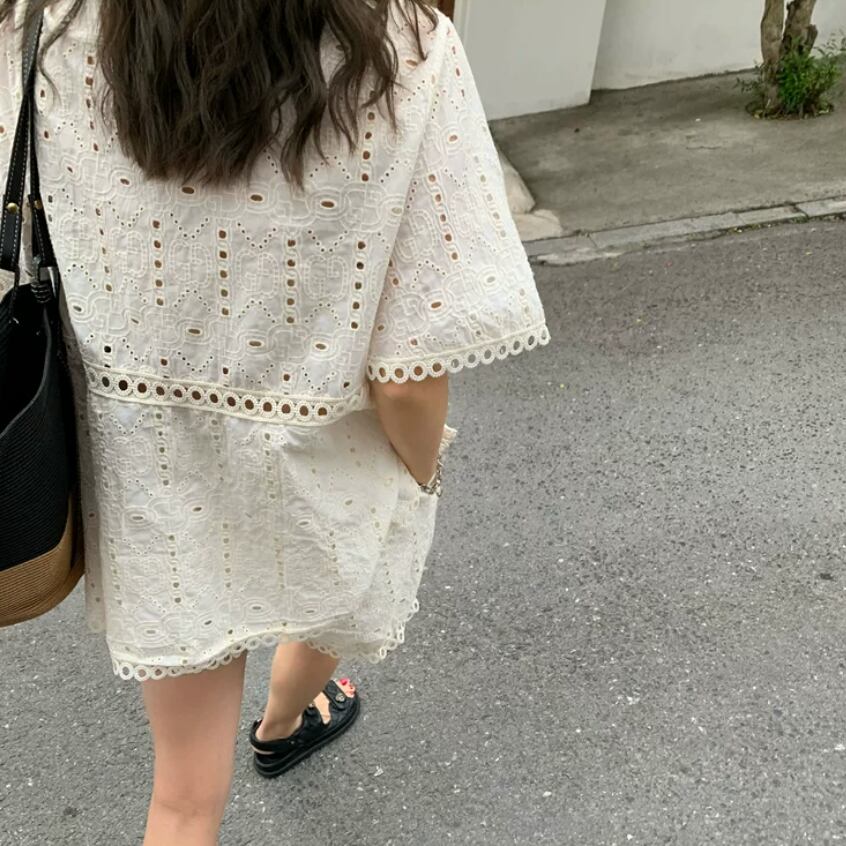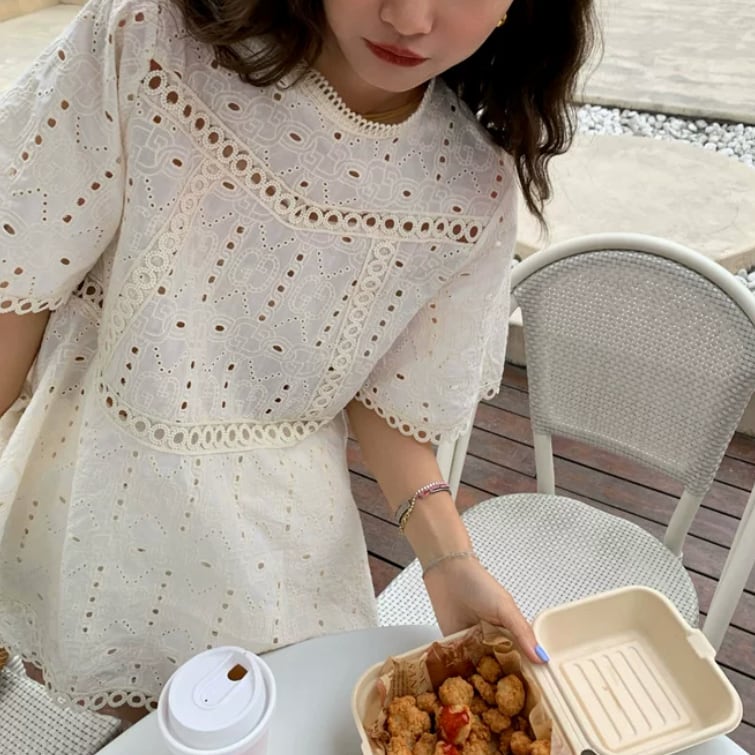 繊細なアイレットレースが、