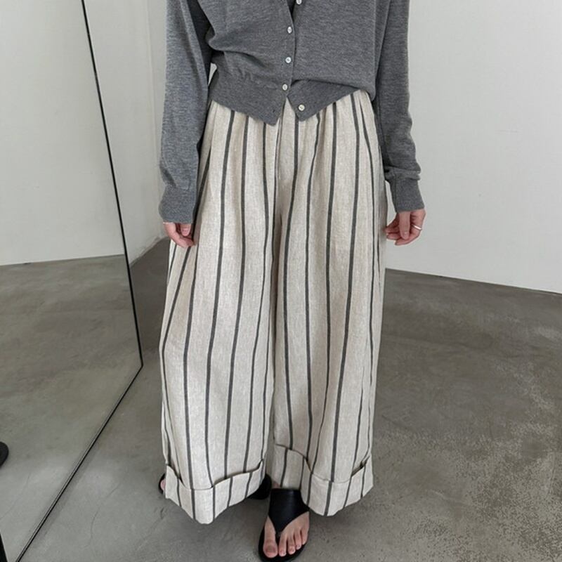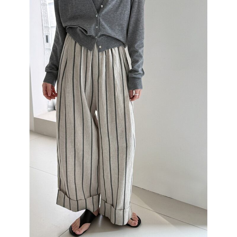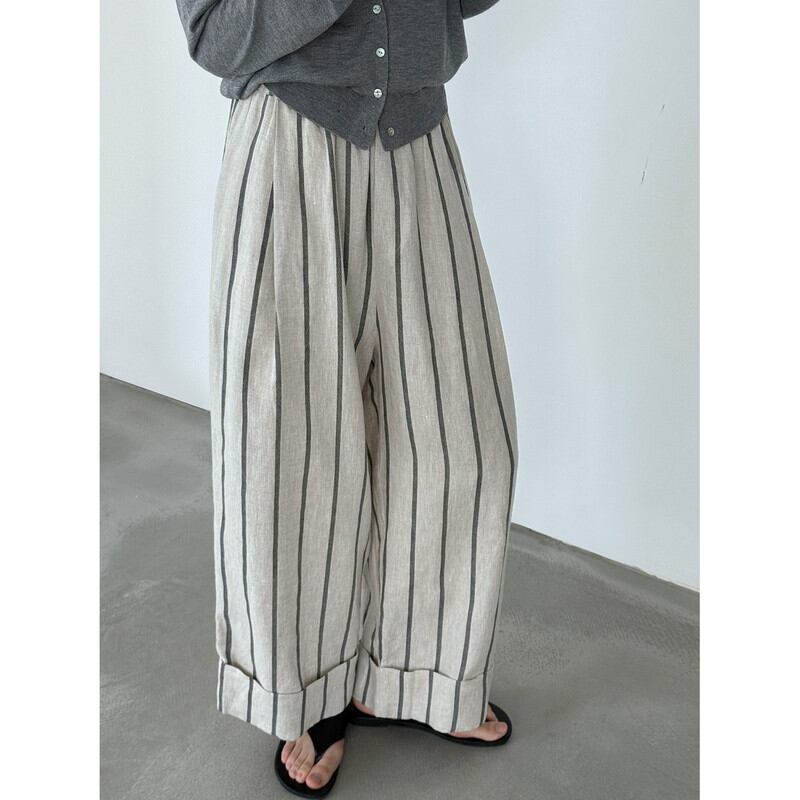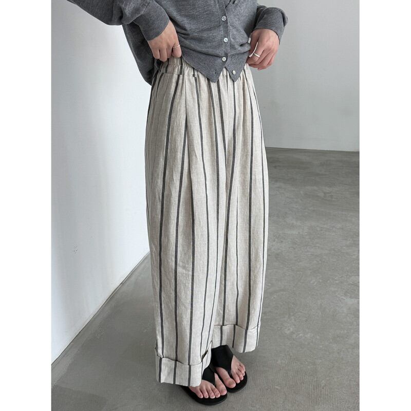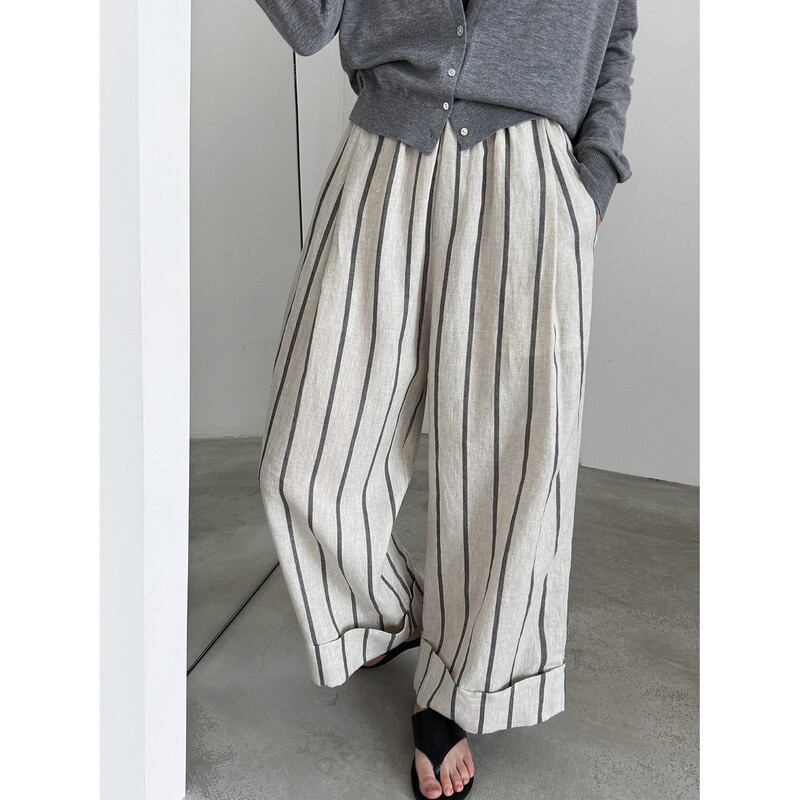 ストライプ柄ナチュラルワイドパンツ 2litr06361