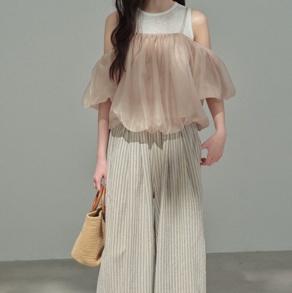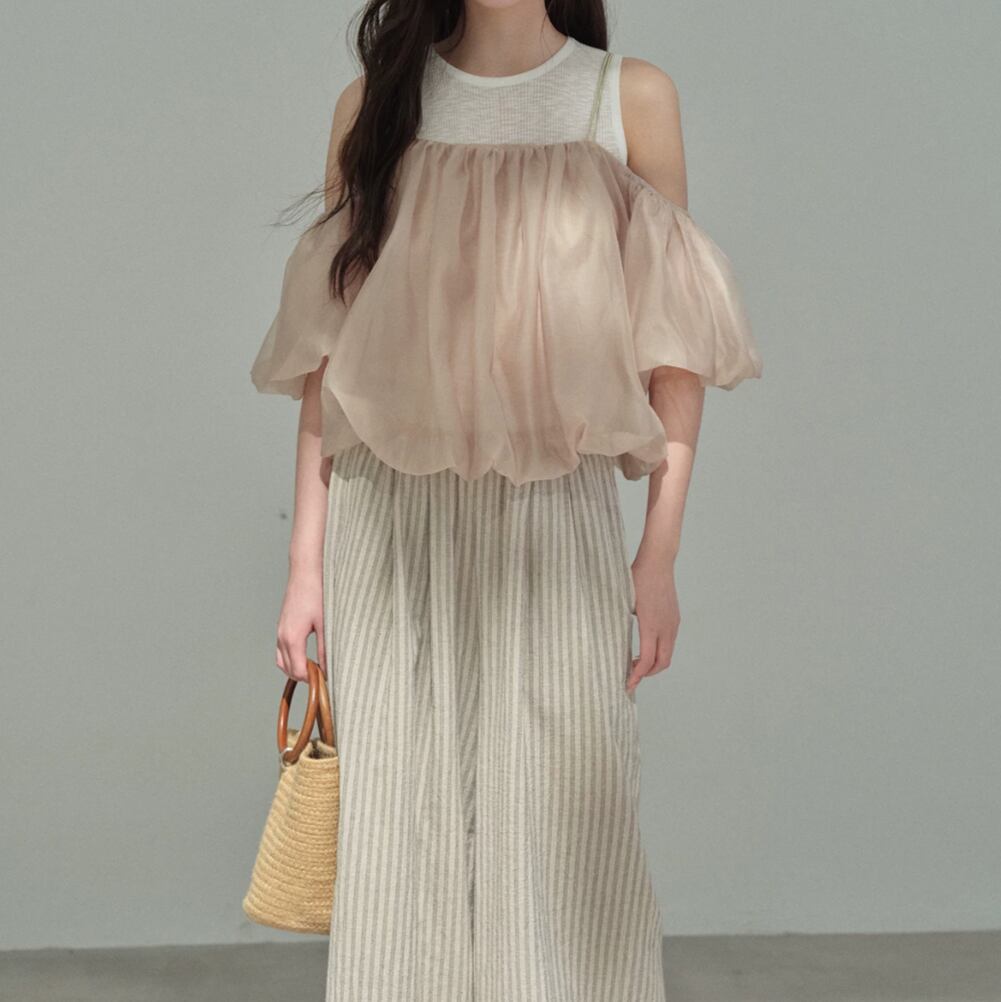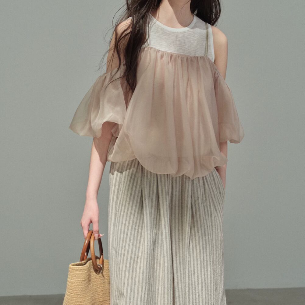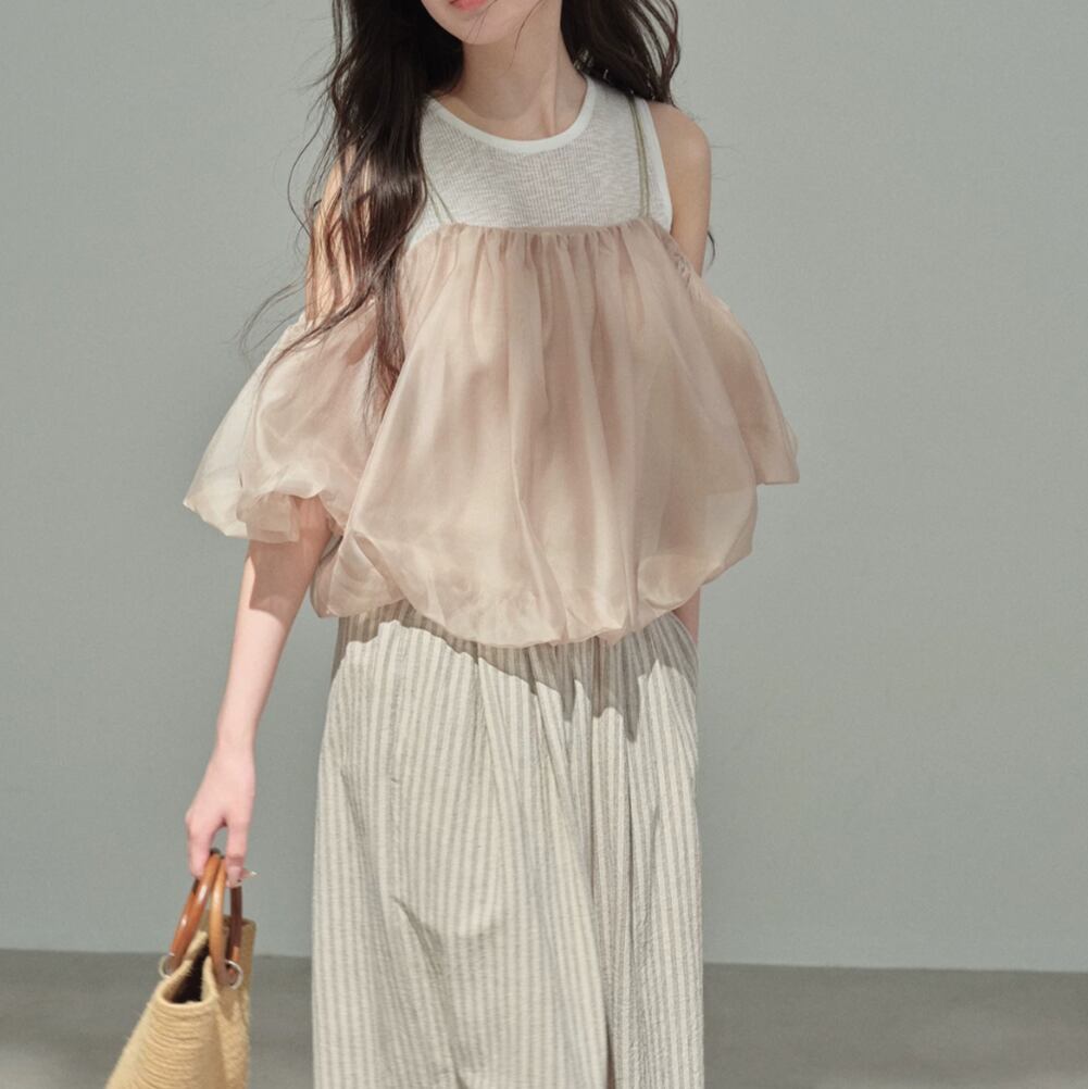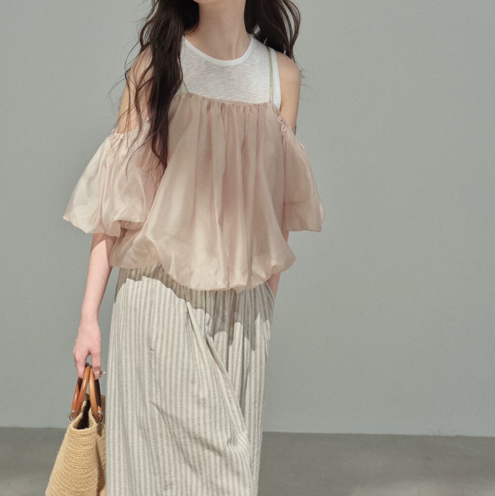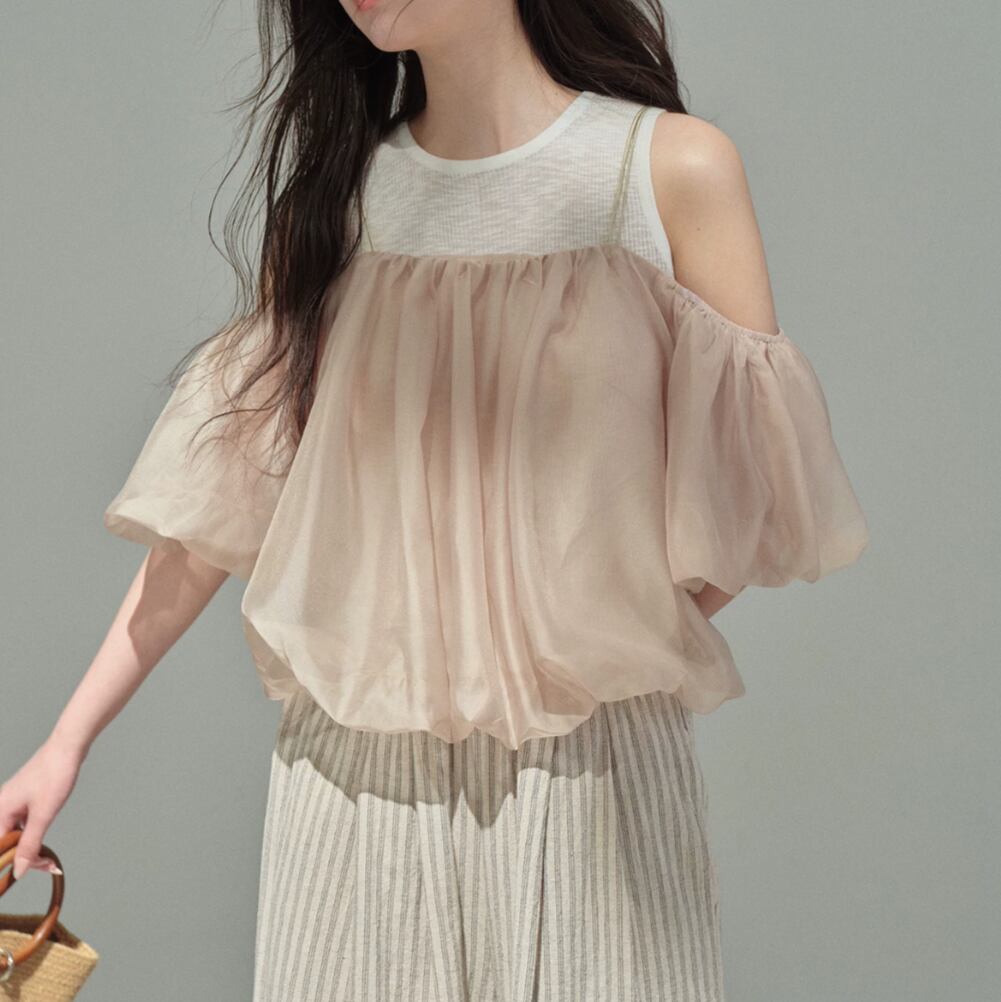 シアーバルーンオフショルレイヤードトップス 2litr06479