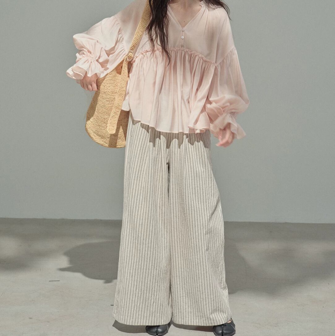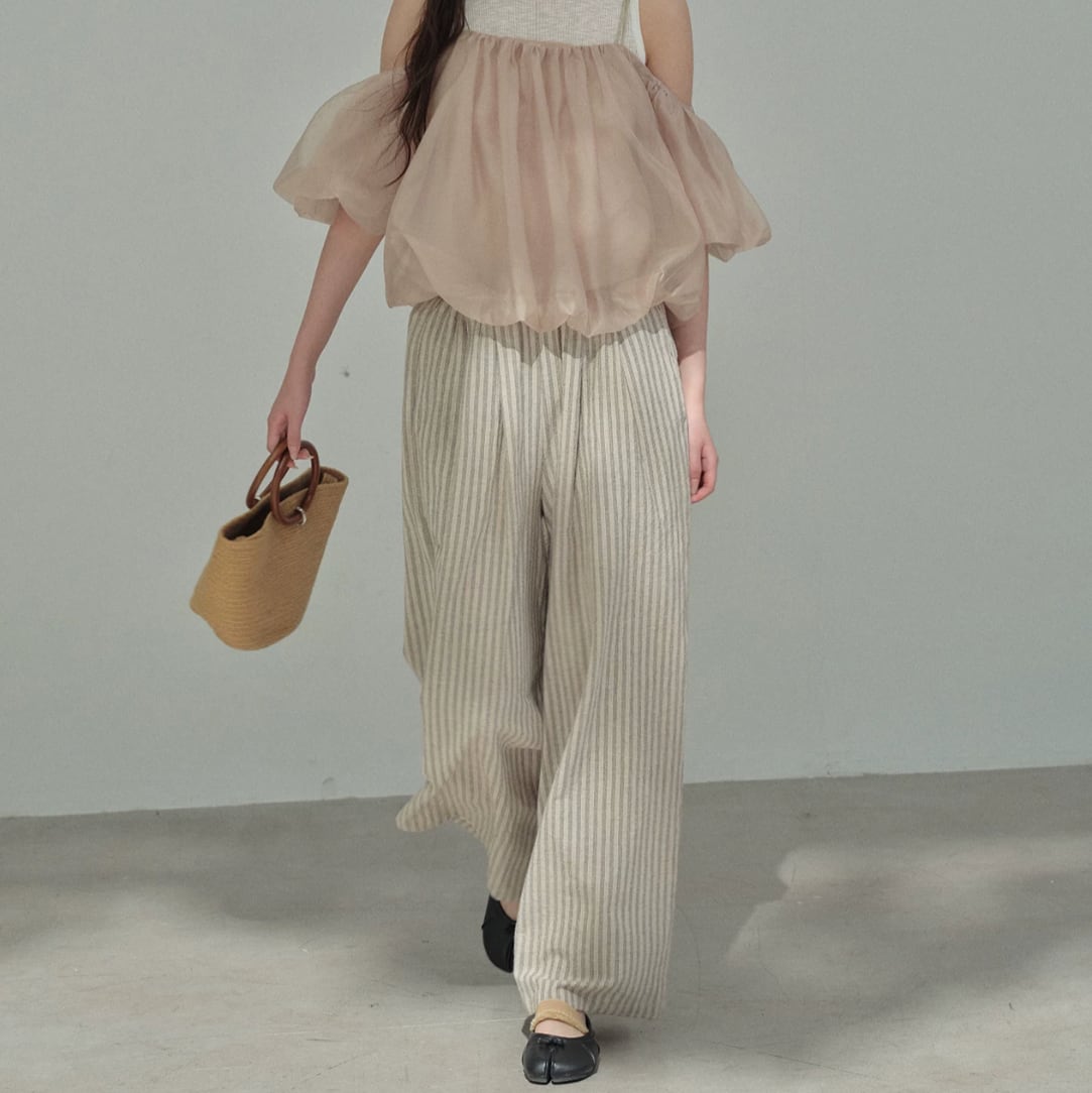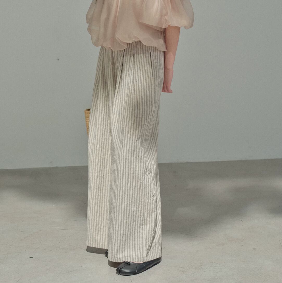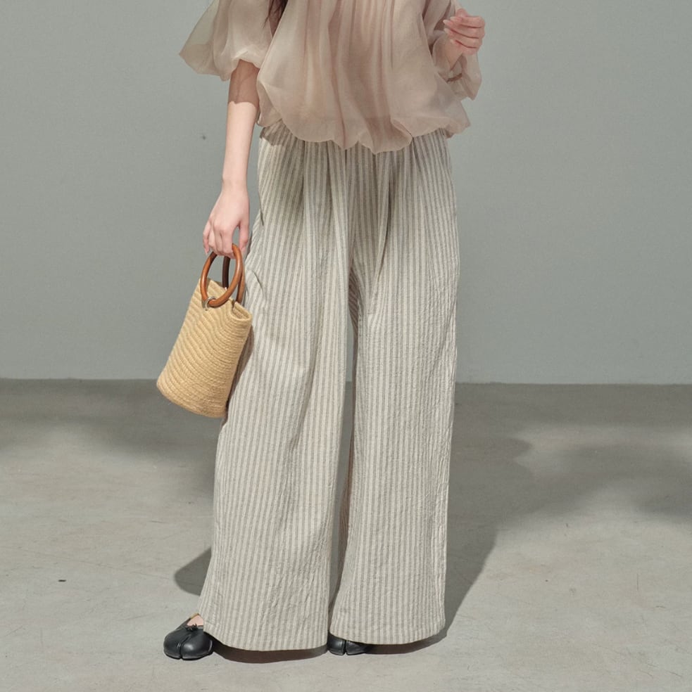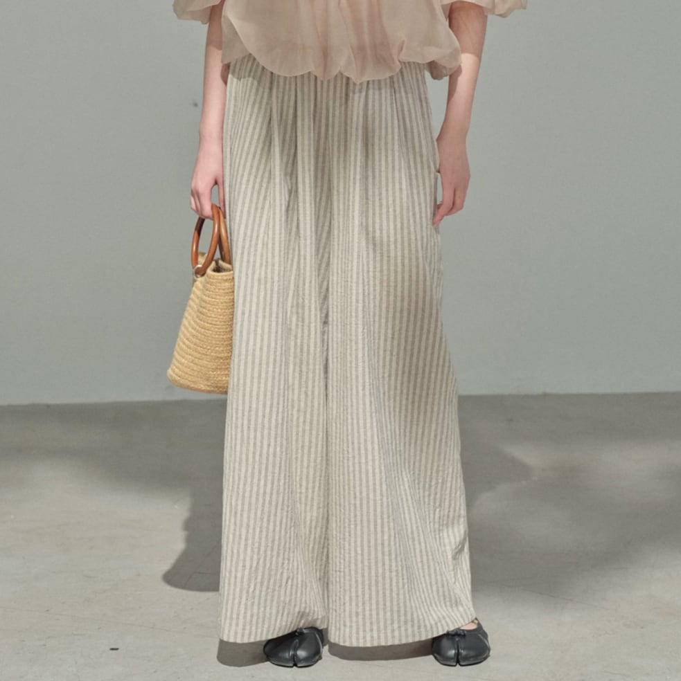 リネンミックスストライプリラックスワイドパンツ 2litr06480