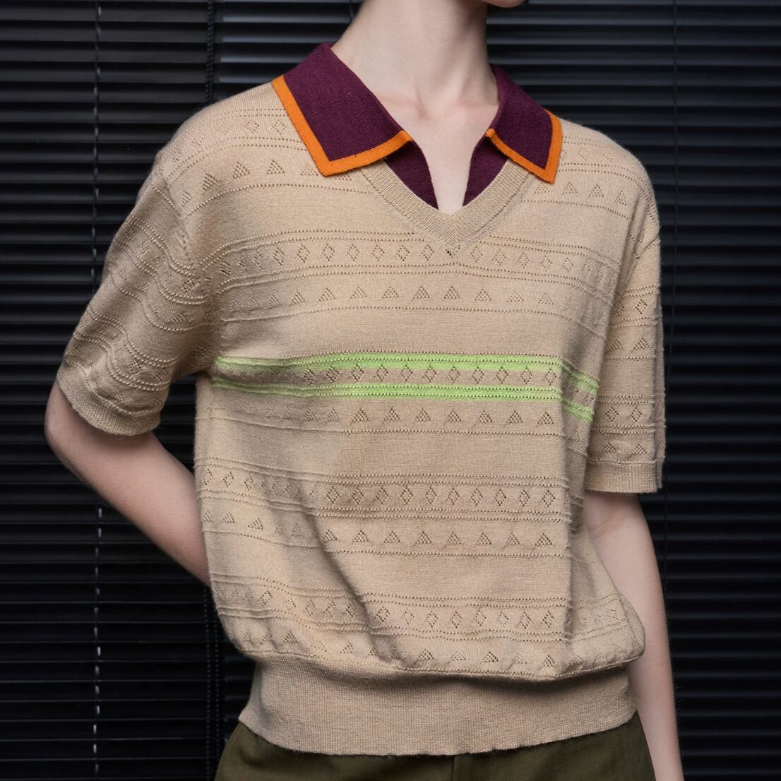 レイヤードカラー 半袖ジャガードニットポロトップス 2litr06484