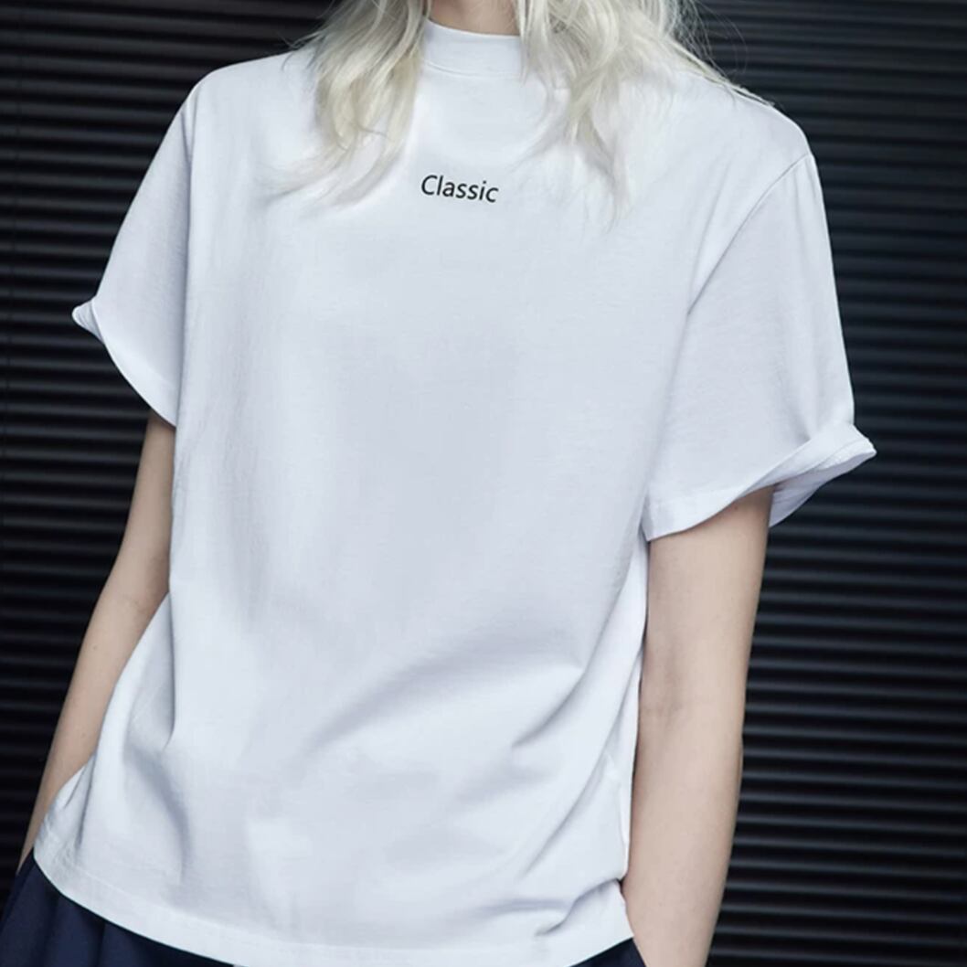 胸元の「Classic」ロゴが控えめなアクセントになり、シンプルながらも洒落感ある仕上がりに。