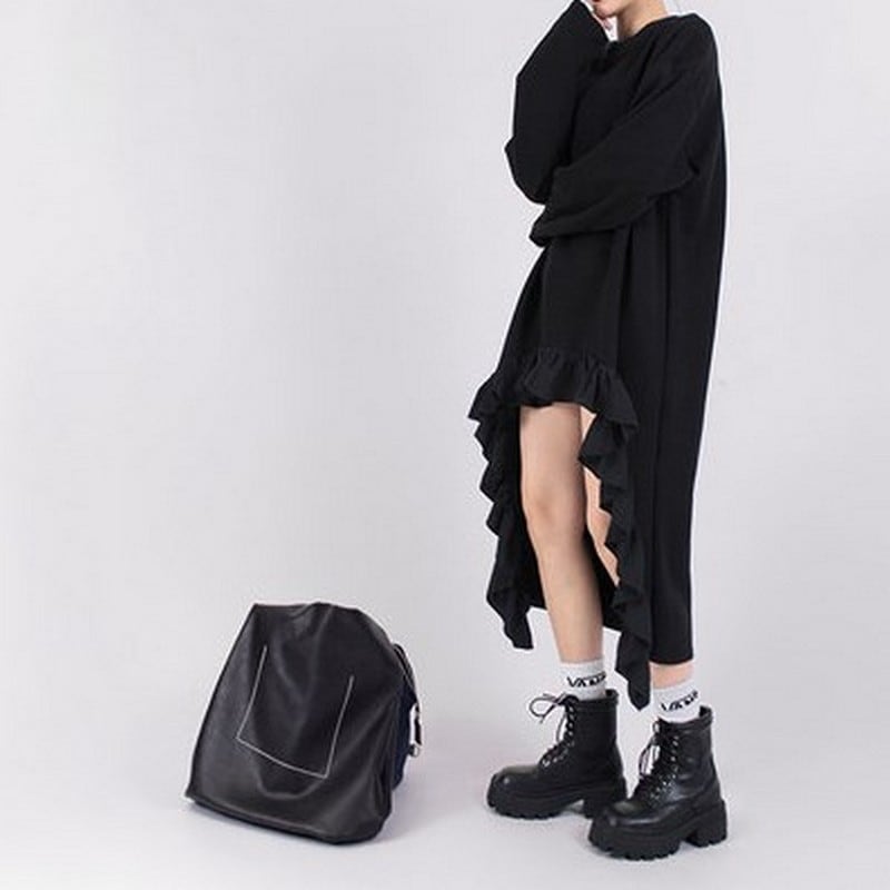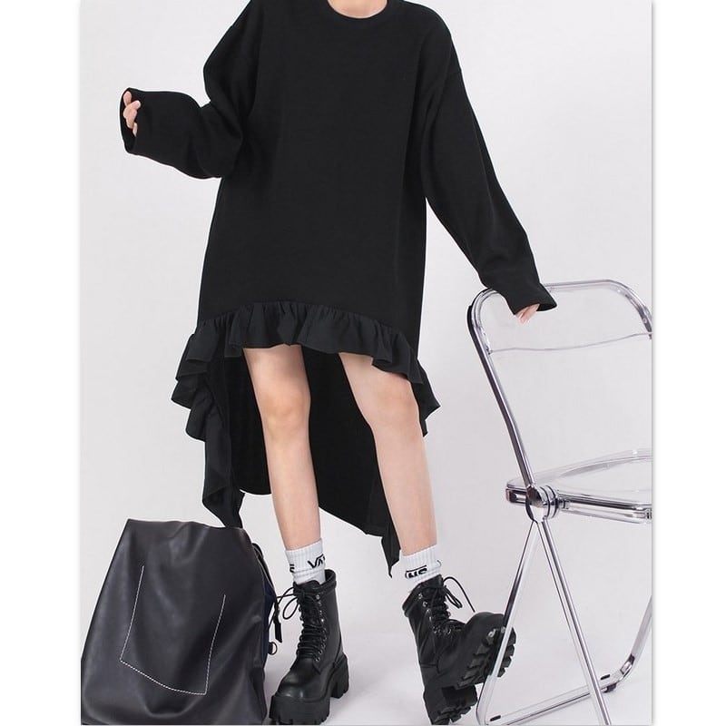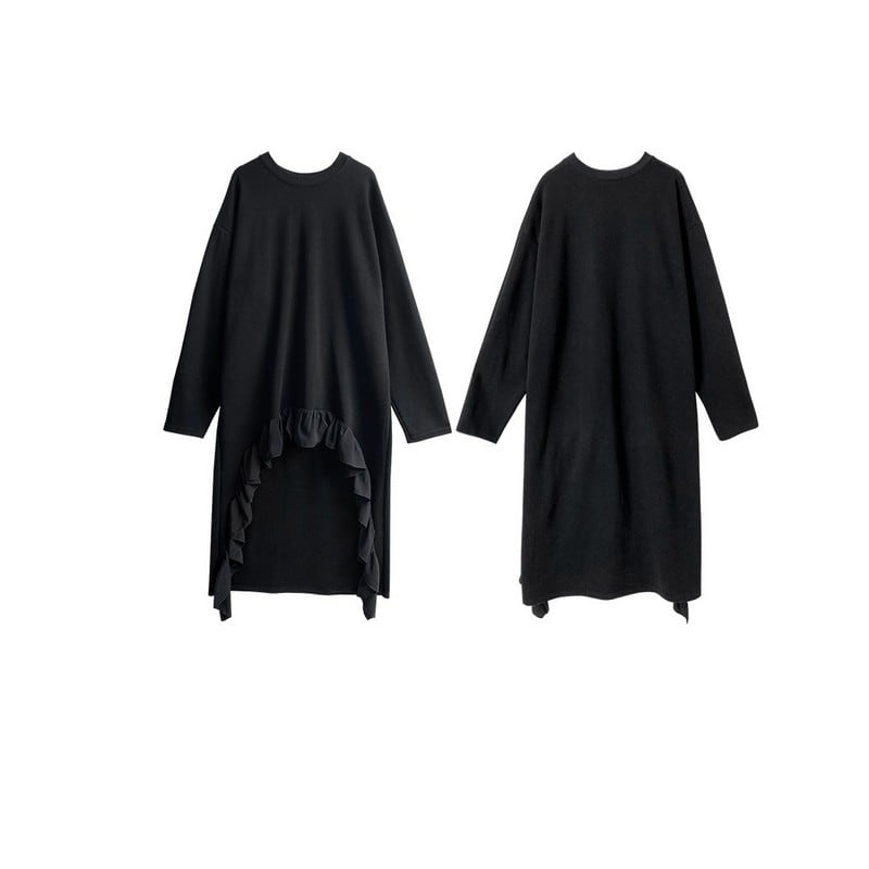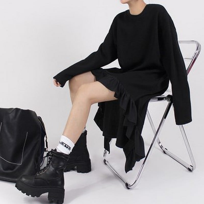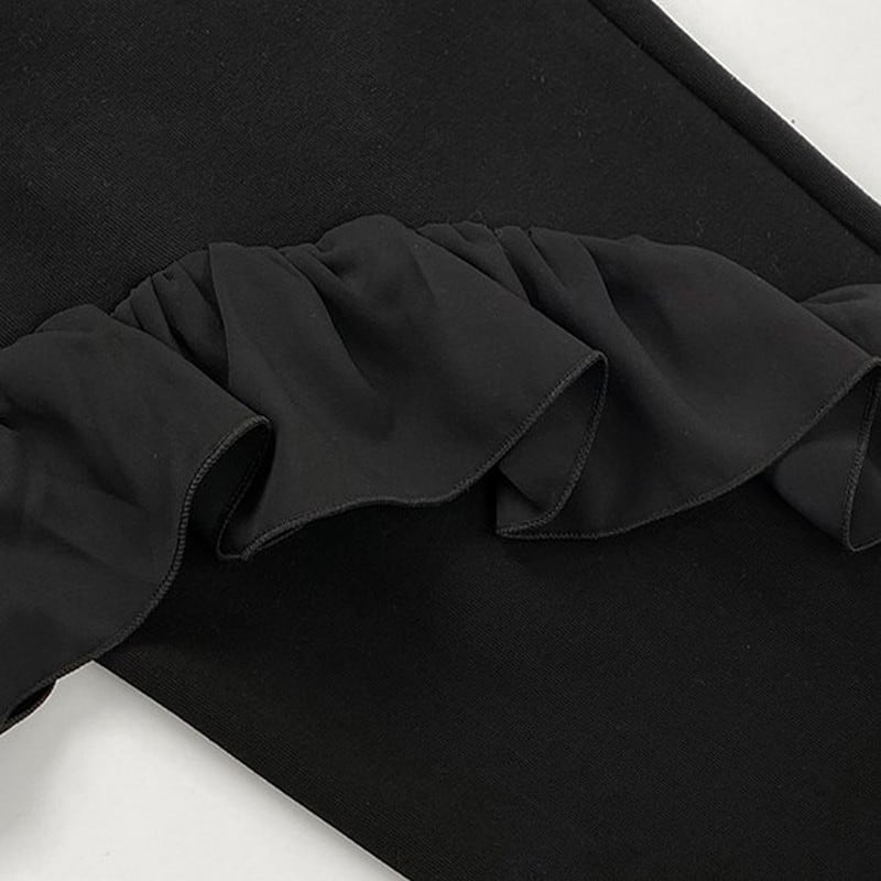 大胆に施されたフリルディテールが印象的な一着。