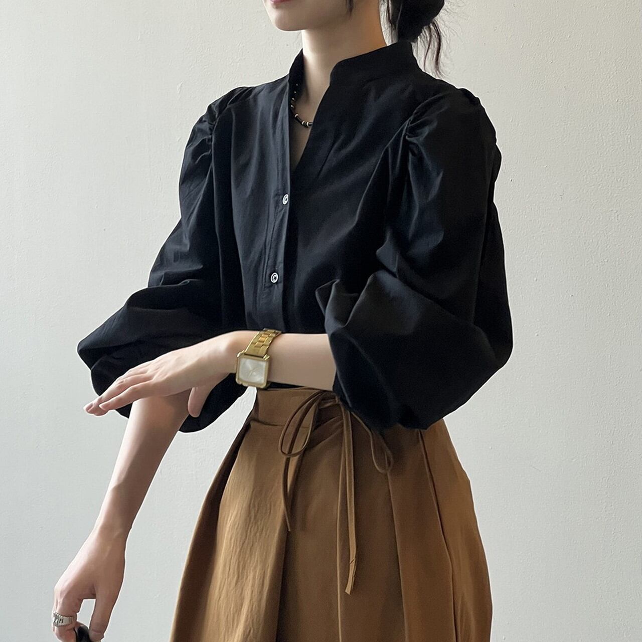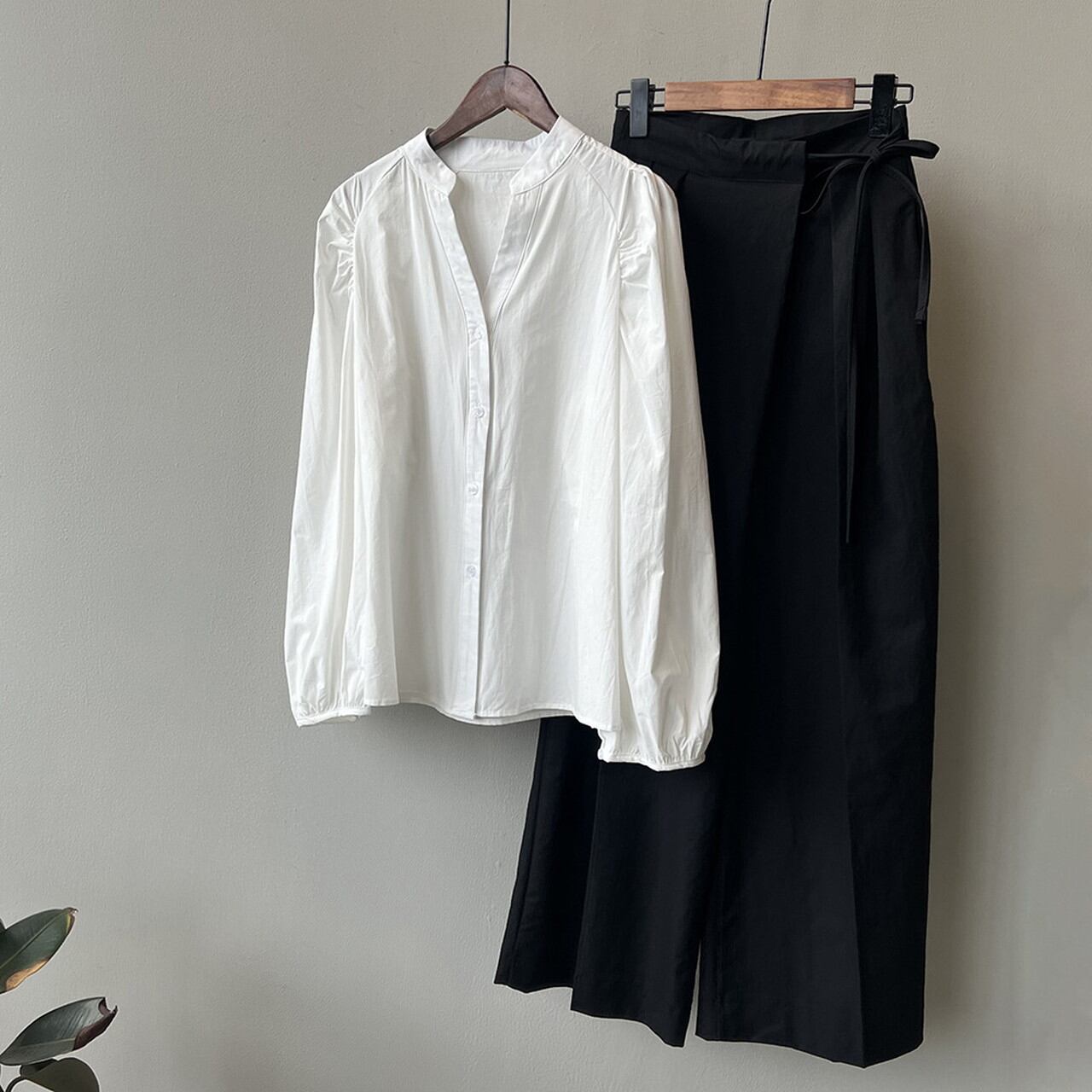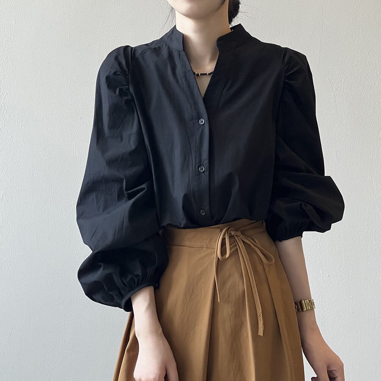 band-collar nichi gather balloon-sleeve blouse 2litr04168