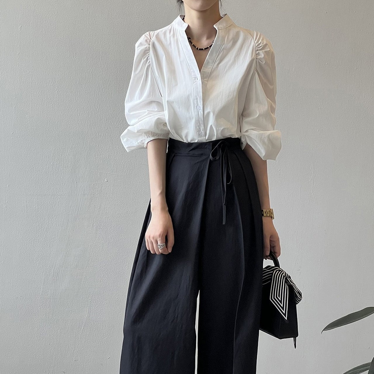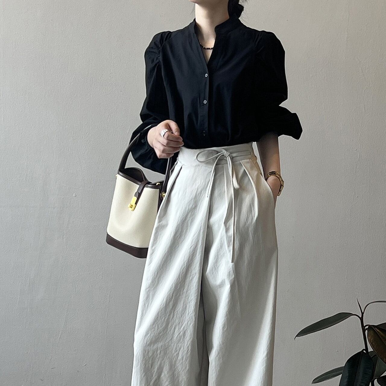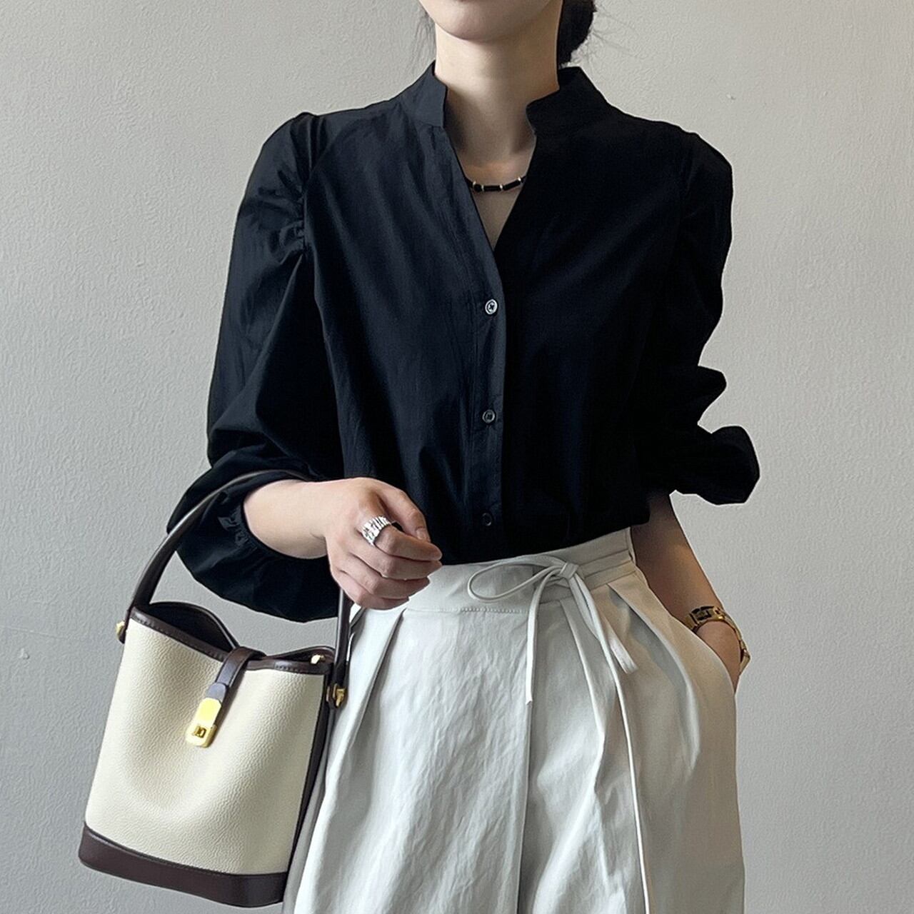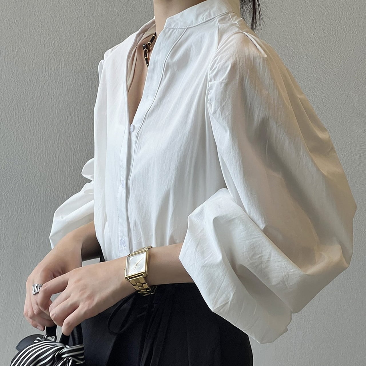 band-collar nichi gather balloon-sleeve blouse 2litr04168