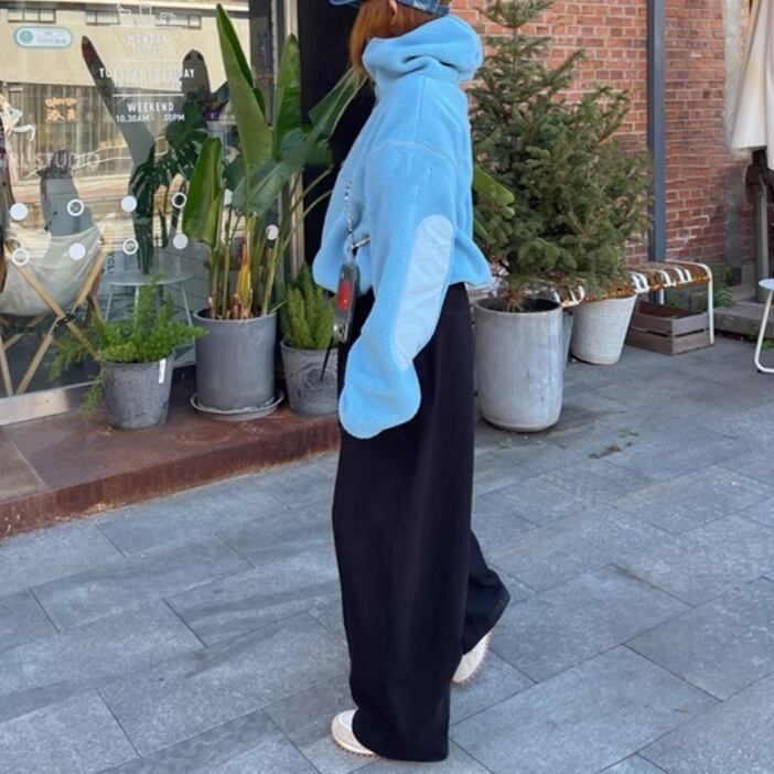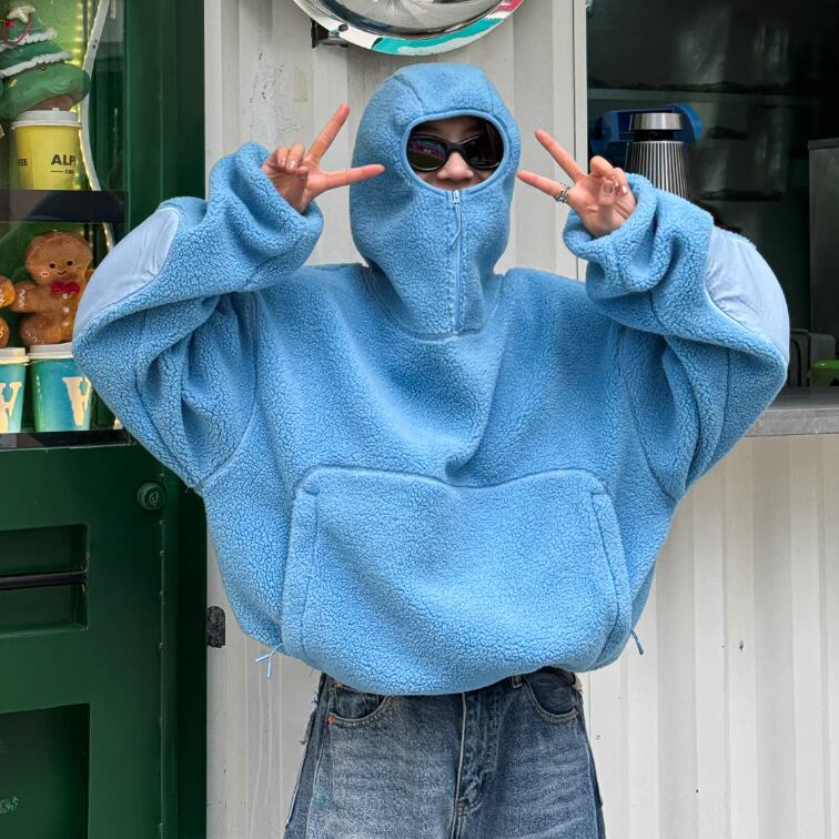鮮やかなブルーが印象的なプルオーバーパーカー。