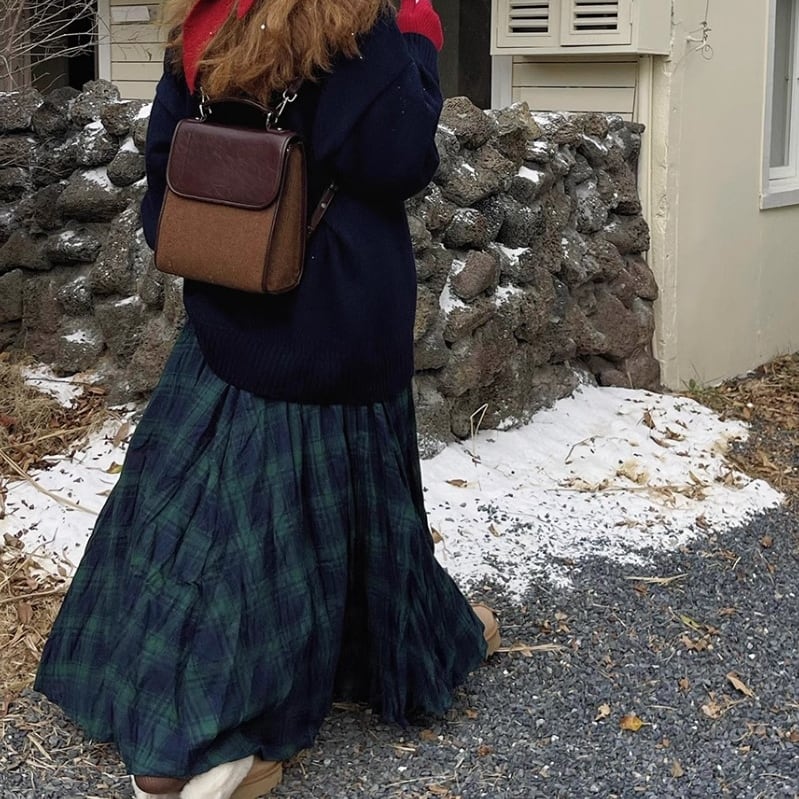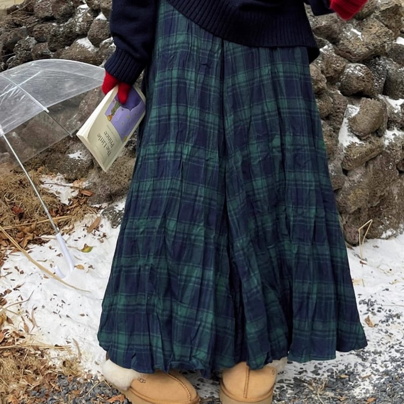 retro check maxi length loose skirt 2litr04473