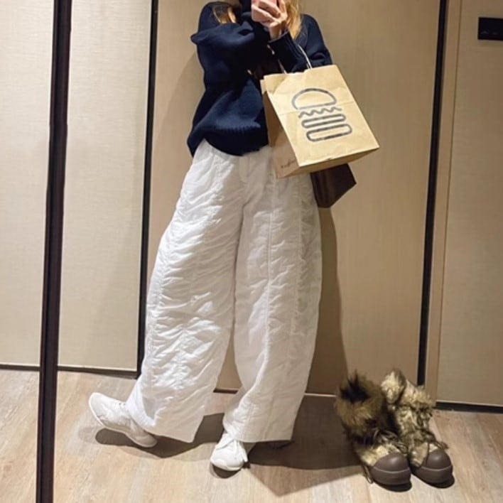 キルティングの暖かいパンツ2カラー。